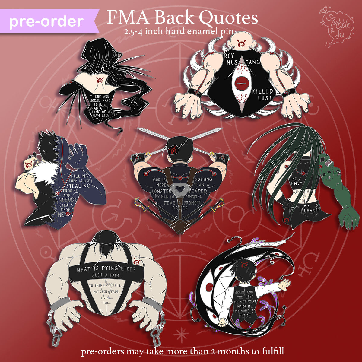 PRE-ORDER FMA Sins 2025 | Back Quotes | Enamel Pins